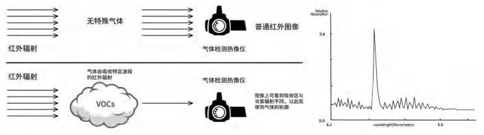 GIR320采用光學氣體成像技術——OGI、氣體分子的振動與紅外吸收技術、氣體泄漏被動式紅外成像的層輻射傳輸模型技術,針對 VOC 氣體紅外吸收譜波段的紅外探測器,使紅外熱像儀能夠對人眼不可見的 VOC 氣體進行成像,儀器紅外氣體成像技術具有直觀、高效、安全的三大特點。