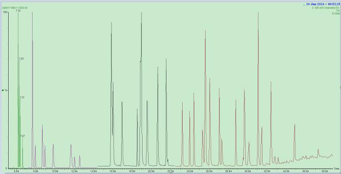 本方法采用Ontech880四級液氮制冷預濃縮儀與GC-MS聯用技術,對42種ODS及其它受控鹵代烴進行檢測。結果顯示,目標物的相關系數均在0.998以上,方法檢出限介于0.2ppt- 0.5ppt之間。該方法分離度良好、靈敏度高且穩定可靠,可滿足《環境空氣中消耗臭氧層物質和含氟溫室氣體手工監測技術規范》中關于環境空氣中ODS和含氟溫室氣體(F-GHGs)的監測要求。
